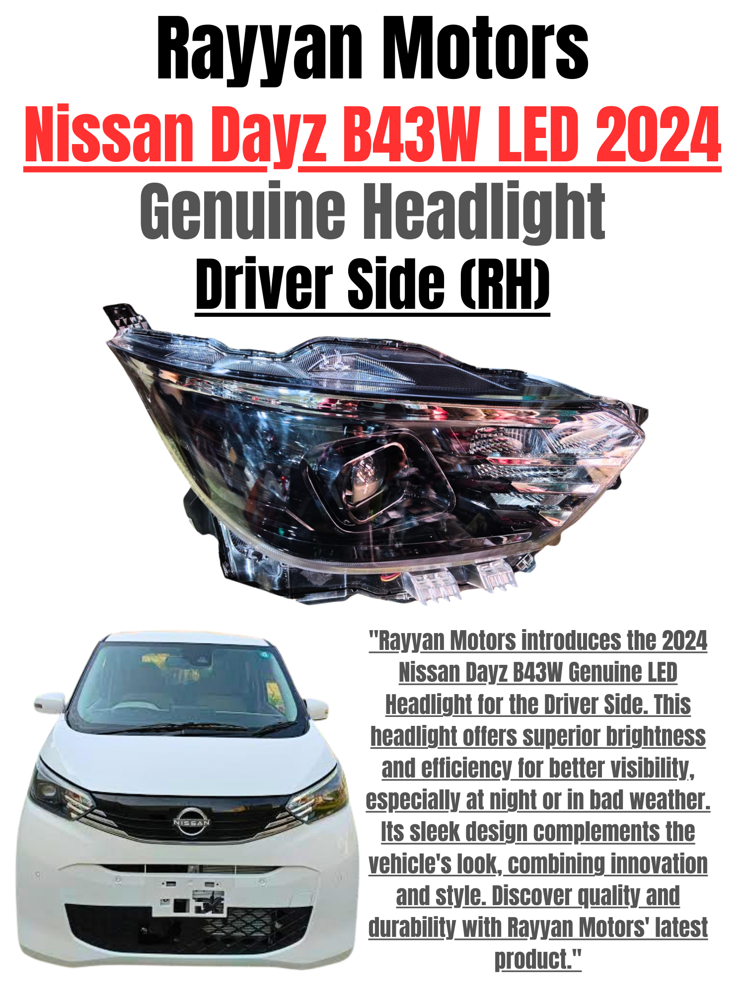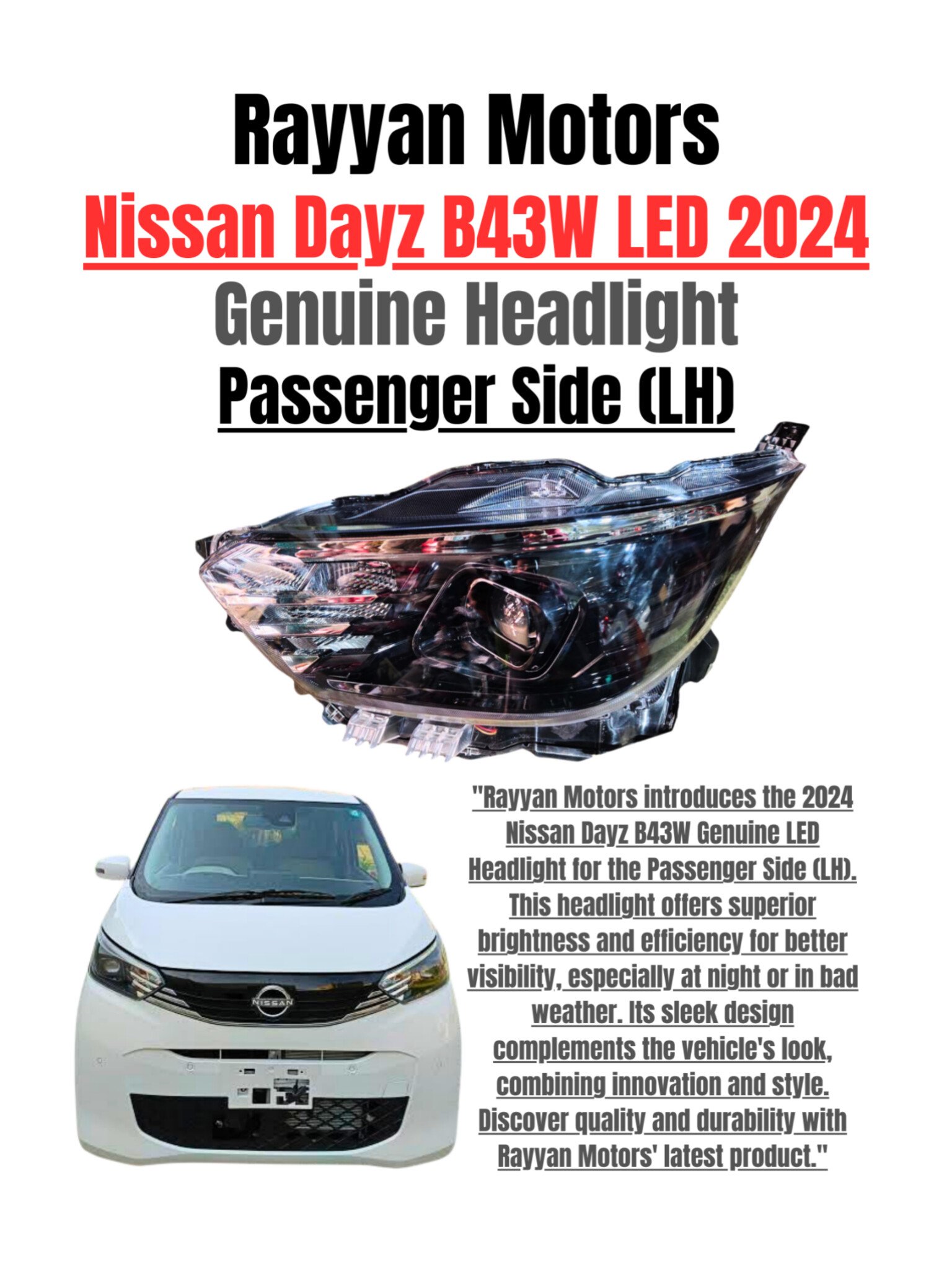 Nissan Dayz B43W Genuine LED Headlight Driver Side (RHD) 2024 | Original Nissan Headlamp Pakistan – Rayyan Motors