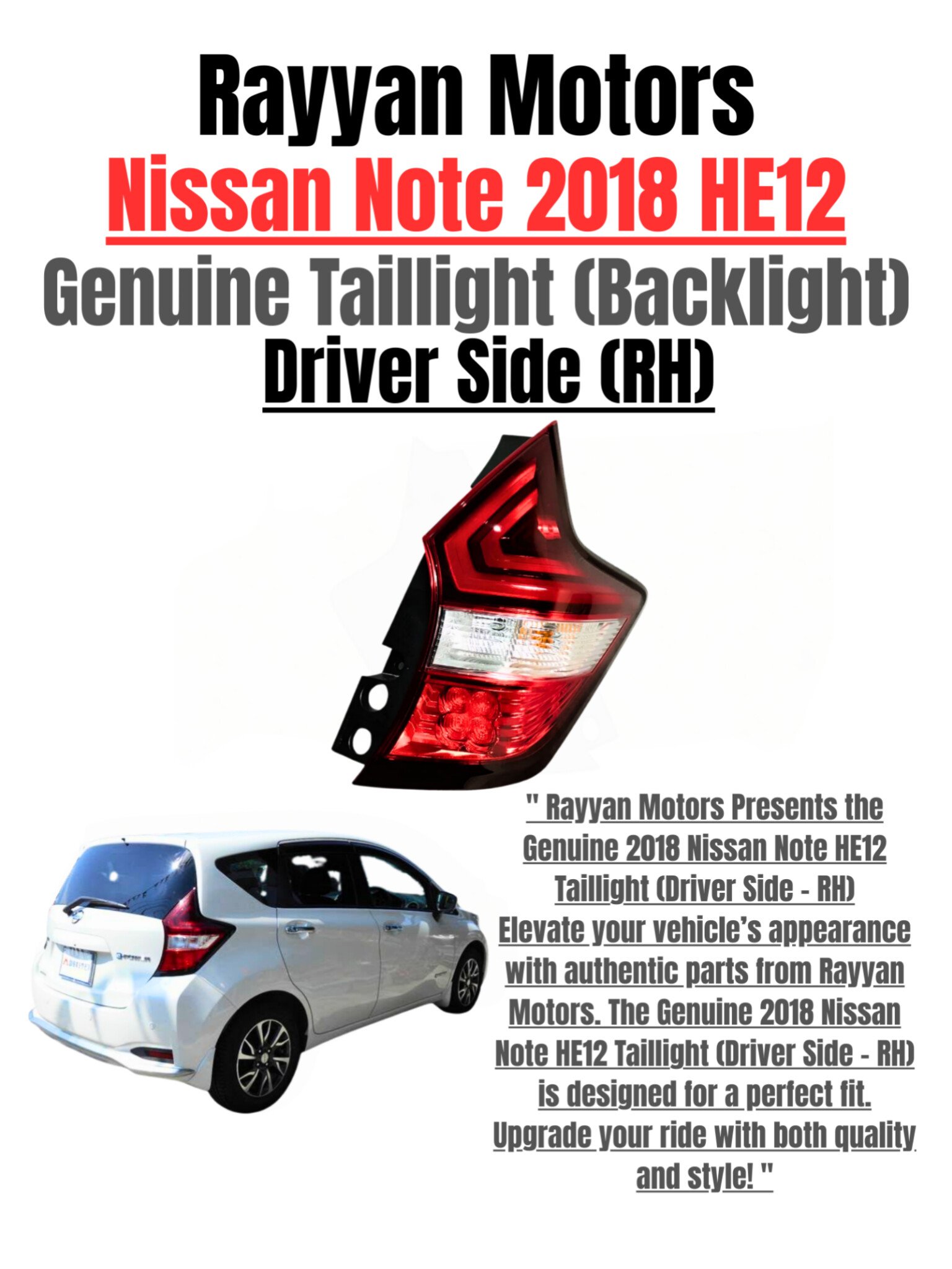 Nissan Note HE12 Genuine Taillight Driver Side (RHD) 2018 | Original Nissan Backlight Pakistan – Rayyan Motors