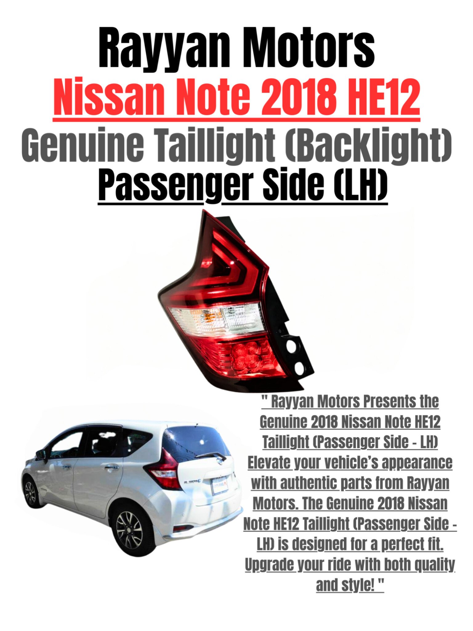 Nissan Note HE12 Genuine Taillight Passenger Side (LHS) 2018 | Original Nissan Backlight Pakistan – Rayyan Motors