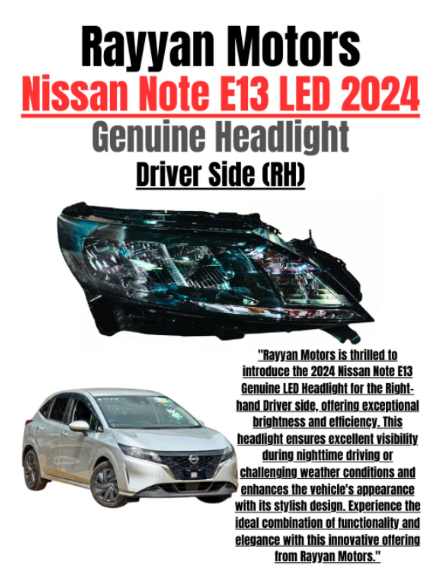 Nissan Note E13 Genuine LED Headlight Driver Side (RHD) 2024 | Original Nissan Headlamp Pakistan – Rayyan Motors